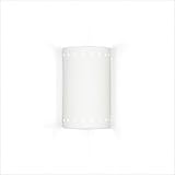 | Shown as UnfinishedOptional finishes available belowBulb not included Title 24 Energy Star American-made paintable ceramic wall sconce Standard lamping: 1-60W Candelabra Base Green product Made in USA 5.25 in. L x 6.75 in. W x 9.75 in. H Our Melos Corner Sconce is a simple cylinder providing up- and down-light enhanced by bands of circular perforations at top and bottom. Melos can be finished to meet your design needs: Monaco Red paint for a cheery option, or Pearl for something cool and calming. ...Read more |