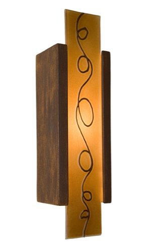 | Bulb not included Title 24 Energy Star ADA compliant Funky and playful Long vertical pane of rectangular colored glass, which extends beyond the ceramic base Highlighted by the raised squiggle line winding its way from the top to the bottom Light shines through openings at the top, the bottom and naturally illuminates the whimsical squiggle design Handmade to A19's exacting standards Using a kiln-fired ceramic base Recycled window glass from local sources American-made ceramic and refused glass wall sconce Made in USA Green product Options: 1- 13W Compact Fluorescent Lamp: Includes GU24 Base Energy Star Bulb Wet location single socket: Replaces standard damp location socket with a single outdoor sheltered socket suitable for direct contact with rain Pictured in Butternut and Caramel 4.25 in. L x 3.25 in. W x 15.5 in. H ...Read more |